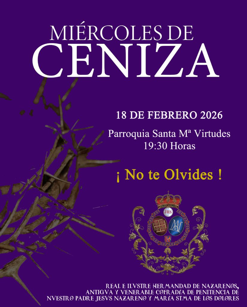 La Hermandad y Cofradía, en una celebración tan especial, invita al Cuerpo General de Hermanos a la asistencia a la Solemne Liturgia de Imposición de la Ceniza como inicio de la Cuaresma. El Miércoles de Ceniza es una de las fechas más importantes y solemnes en el calendario cristiano. Marca el inicio de la Cuaresma, un periodo de cuarenta días de preparación espiritual antes de la Pascua. Para millones de católicos alrededor del mundo, este día no es solo un evento litúrgico, sino un momento profundo para reconectar con sus raíces, su fe y sus valores cristianos.